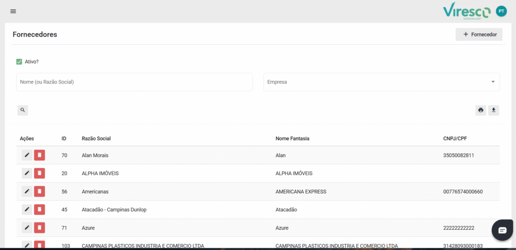 🔎 Para saber mais sobre a Tela de Gestão de Fornecedores no Viresco ERP, acesse: Entenda a Tela de Gestão de Fornecedores no Viresco ERP