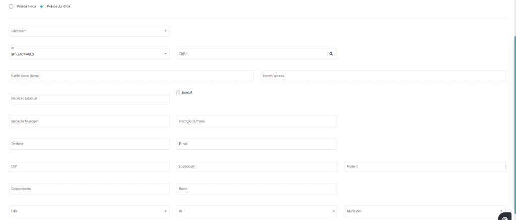Para cadastrar um novo Fornecedor, clique em , uma nova tela será carregada.