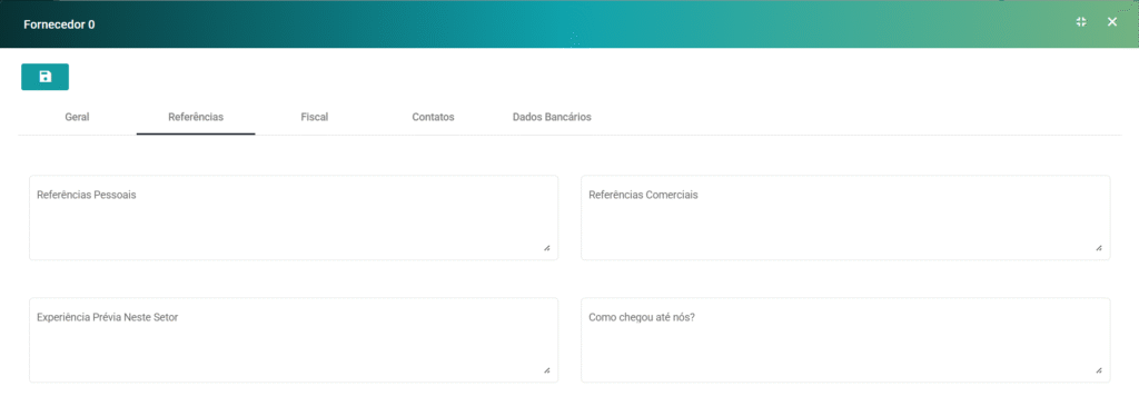 Nesta aba você poderá cadastrar informações sobre o Fornecedor, como, referências comerciais e como esse Fornecedor chegou até sua empresa;