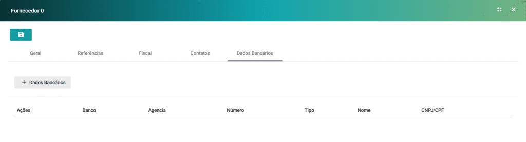 Nesta aba você irá cadastrar os dados bancários do Fornecedor.
